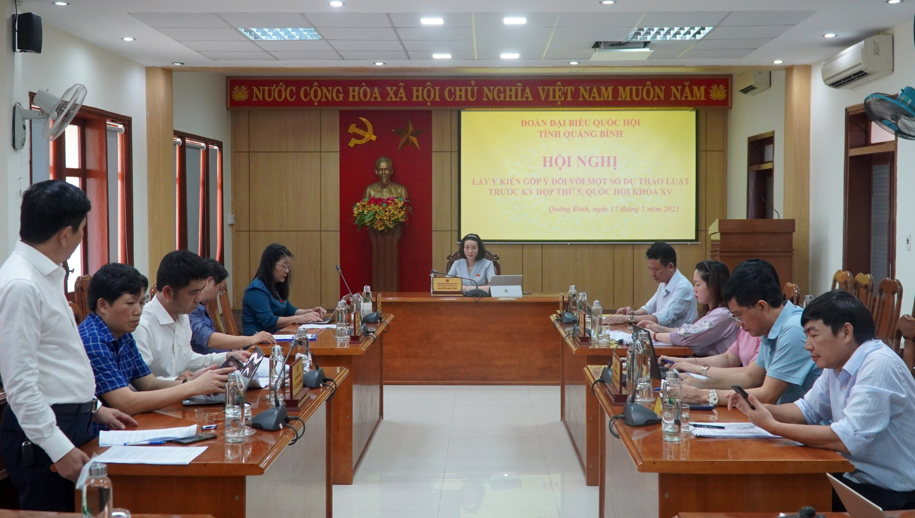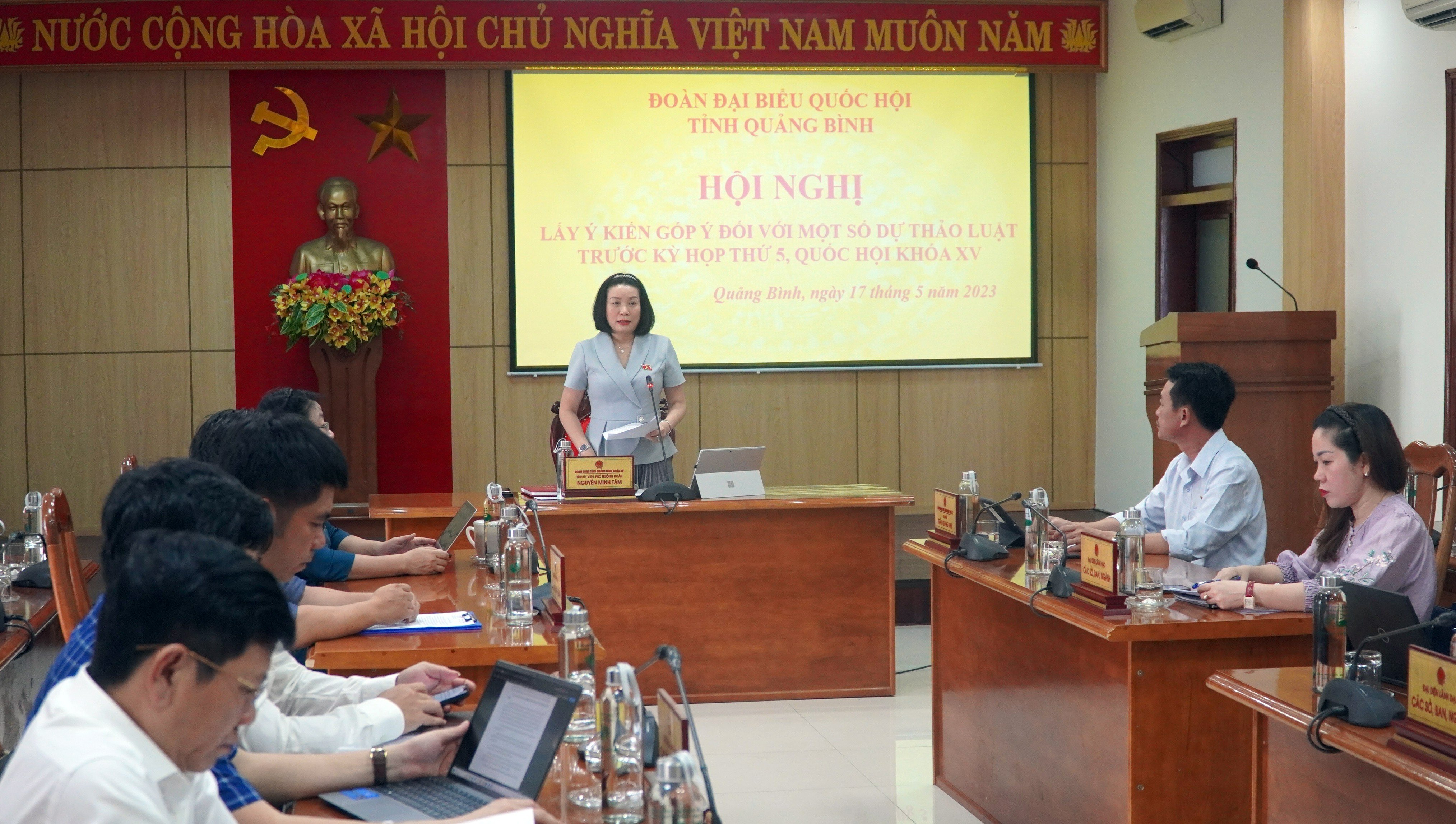 Chuẩn bị cho kỳ họp thứ 5, Quốc hội khóa XV, sáng nay, 17/5/2023, Đoàn ĐBQH tỉnh đã tổ chức hội nghị tổ chức hội nghị góp ý dự thảo luật. Đồng chí Nguyễn Minh Tâm, Tỉnh ủy viên, Phó trưởng đoàn chuyên trách Đoàn ĐBQH tỉnh chủ trì hội nghị với sự tham gia của các ĐBQH Nguyễn Thị Tuyết Nga, Trần Quang Minh và đại diện lãnh đạo các sở, ban, ngành liên quan.