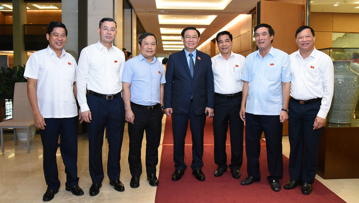 Chủ tịch Quốc hội Vương Đình Huệ chụp ảnh lưu niệm cùng các đại biểu