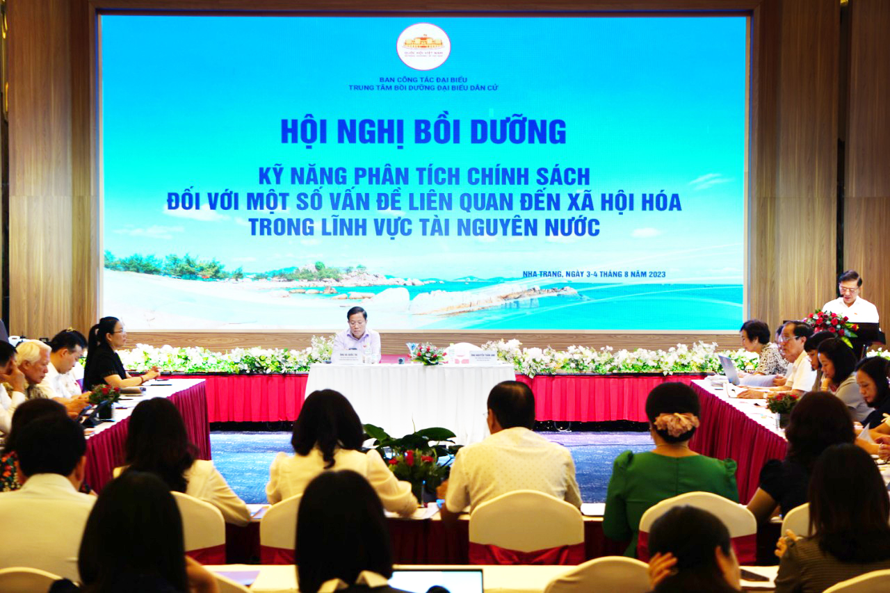 Trong 2 ngày 03-04/8/2023, tại thành phố Nha Trang, tỉnh Khánh Hòa, Ban Công tác đại biểu thuộc Ủy ban Thường vụ Quốc hội tổ chức hội nghị bồi dưỡng “Kỹ năng phân tích chính sách đối với một số vấn đề liên quan đến xã hội hóa trong lĩnh vực tài nguyên nước” cho hơn 140 đại biểu của 41 tỉnh, thành trong cả nước.