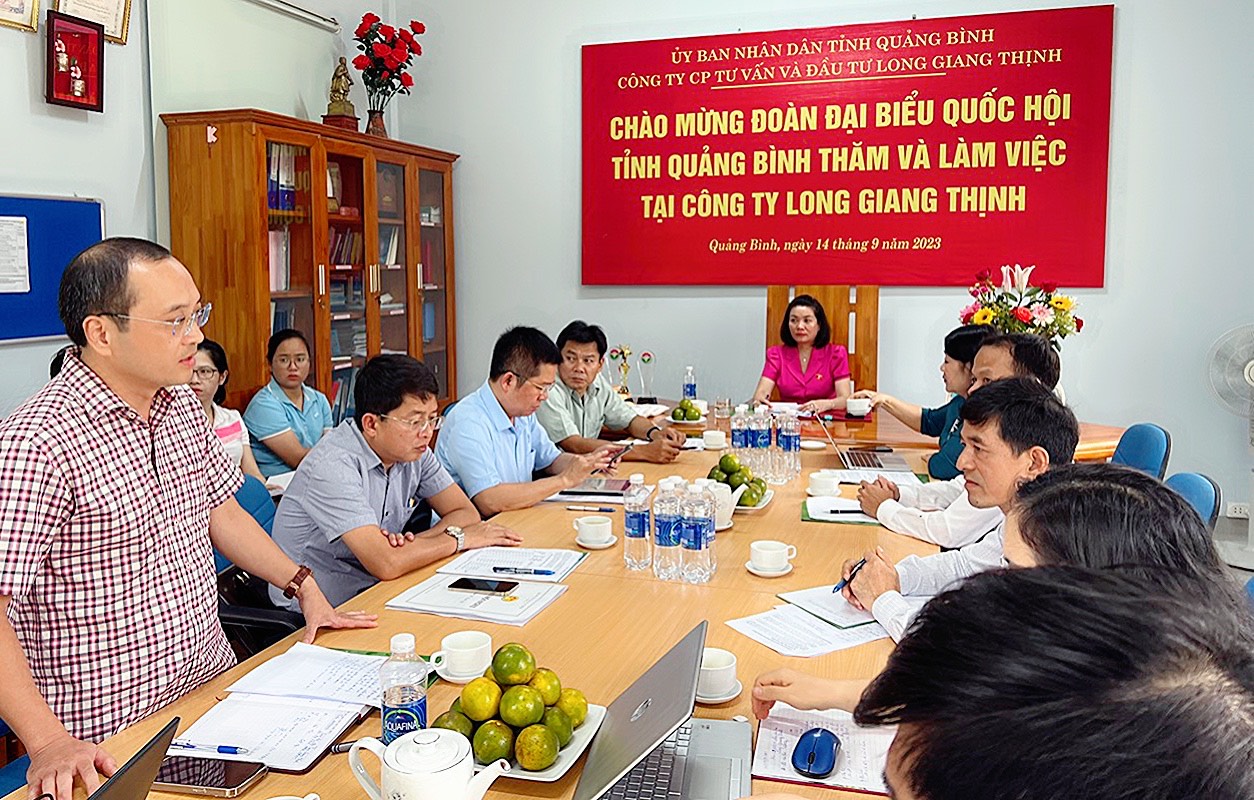 Tiếp tục chương trình làm việc, sáng ngày 14/9, Đoàn giám sát của Đoàn đại biểu Quốc hội (ĐBQH) tỉnh do đồng chí Nguyễn Minh Tâm, Tỉnh ủy viên, Phó trưởng đoàn chuyên trách Đoàn ĐBQH tỉnh chủ trì đã giám sát tại Công ty TNHH Tập đoàn Sơn Hải và Công ty cổ phần tư vấn và Đầu tư Long Giang Thịnh với nội dung "Tình hình triển khai, thực hiện pháp luật về chế độ, chính sách bảo hiểm y tế, bảo hiểm xã hội (BHYT, BHXH) trên địa bàn tỉnh Quảng Bình giai đoạn 2016-2023".