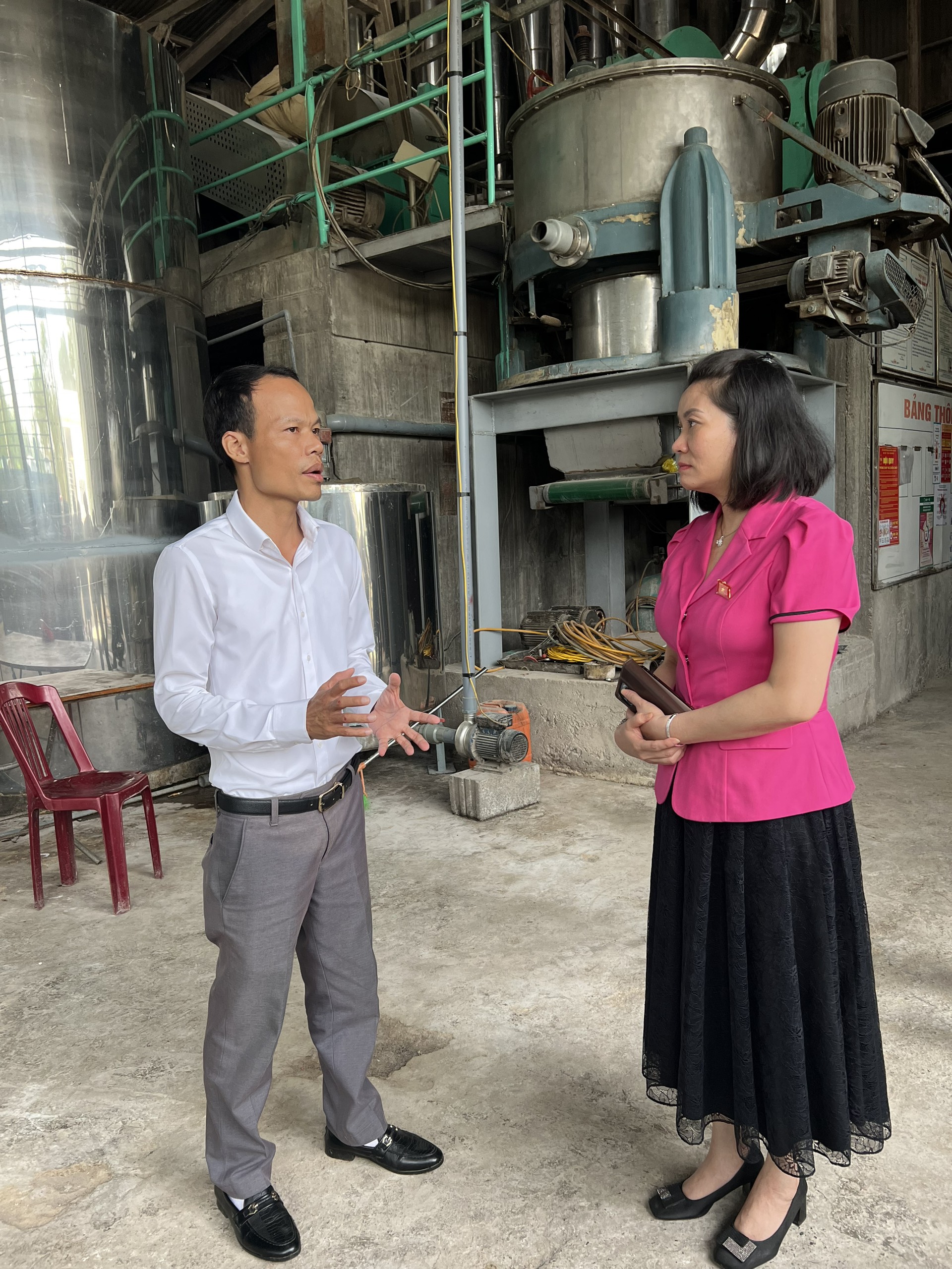 Chiều cùng ngày, Đoàn giám sát làm việc tại Công ty cổ phần tư vấn và Đầu tư Long Giang Thịnh. Tại buổi làm việc, Đoàn đã nghe báo cáo của lãnh đạo công ty về tình hình thực hiện chế độ, chính sách BHXH, BHYT giai đoạn 2016-2023 của công ty. Là một công ty sản xuất tinh bột sắn trên địa bàn huyện Quảng Ninh, hàng năm, Long Giang Thịnh đã góp phần tiêu thụ sản phẩm cho hàng nghìn hộ nông dân trồng sắn trên địa bàn tỉnh Quảng Bình, tạo việc làm cho gần 100 lao động địa phương làm việc trong nhà máy, góp phần đóng góp vào ngân sách Nhà nước khoảng 03 tỷ đồng/năm. Tuy nhiên, trong thời gian từ 2020, do thiếu vốn sản xuất cũng như thiếu nguồn nguyên liệu cung cấp nên hàng năm nhà máy chỉ hoạt động được khoảng 40 - 50% công suất thiết kế. Hiện trong bối cảnh đứt gãy chuỗi cung ứng, sản xuất và nguồn nguyên liệu khó khăn, ảnh hưởng suy thoái kinh tế, Công ty gặp khó khăn trong việc đảm bảo chi trả lương và đóng BHXH đúng quy định cho công nhân, người lao động.