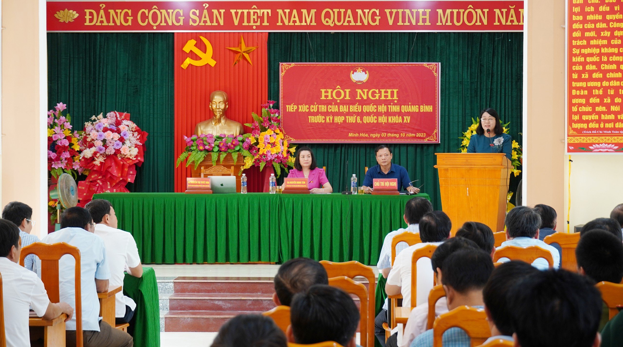 Chiều ngày 03-10, Đoàn đại biểu Quốc hội tỉnh đại diện có: Bà Nguyễn Minh Tâm - TUV, Phó Trưởng Đoàn ĐBQH tỉnh, bà Nguyễn Thị Tuyết Nga, Ủy viên chuyên trách Ủy ban Văn hóa, Giáo dục của Quốc hội khóa XV; tham gia có đại diện lãnh đạo Sở Lao động-Thương binh và Xã hội, Ban Dân tộc, lãnh đạo Huyện ủy, Thường trực HĐND, UBND có buổi tiếp xúc với cử tri tại xã Hóa Thanh, huyện Minh Hóa.