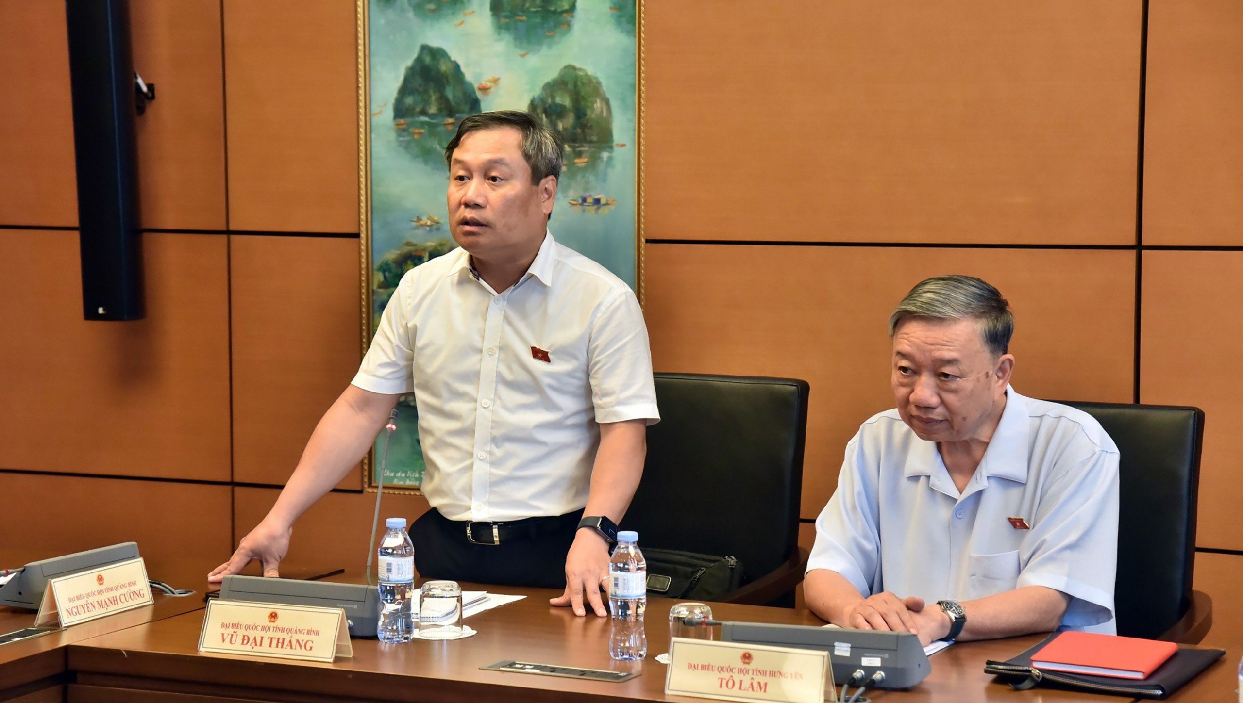 Chiều ngày 24/5, tiếp tục chương trình Kỳ họp thứ 7, Quốc hội khóa XV, các đại biểu Quốc hội thảo luận tại Tổ về Dự án Luật sửa đổi, bổ sung một số điều của Luật Cảnh vệ và Dự án Luật Quản lý, sử dụng vũ khí, vật liệu nổ và công cụ hỗ trợ (sửa đổi). Chủ tịch nước Tô Lâm tham dự thảo luận tại Tổ 12 gồm các Đoàn đại biểu Quốc hội các tỉnh Hưng Yên, Ninh Bình, Quảng Bình, Ninh Thuận do ông Vũ Đại Thắng, Ủy viên Trung ương Đảng, Bí thư Tỉnh ủy, Trưởng đoàn đại biểu Quốc hội tỉnh Quảng Bình, làm Tổ trưởng.