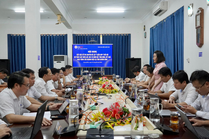 Tại Hội nghị, các đại biểu đều nhất trí với sự cần thiết thông qua dự án Luật Điện lực (sửa đổi) và thông tin một số nội dung. Giám đốc Công ty Điện lực Quảng Bình Hoàng Hiếu Trung đã báo cáo với Đoàn ĐBQH tỉnh Quảng Bình về tình hình cung ứng điện 9 tháng đầu năm, đáp ứng tốt nhu cầu sử dụng điện phục vụ sản xuất - kinh doanh và sinh hoạt của nhân dân, góp phần đảm bảo an ninh, quốc phòng, chính trị, xã hội, đặc biệt trong mùa nắng nóng, trong các dịp Lễ, các sự kiện quan trọng của tỉnh, trên cơ sở đảm bảo phương thức vận hành lưới điện hợp lý.