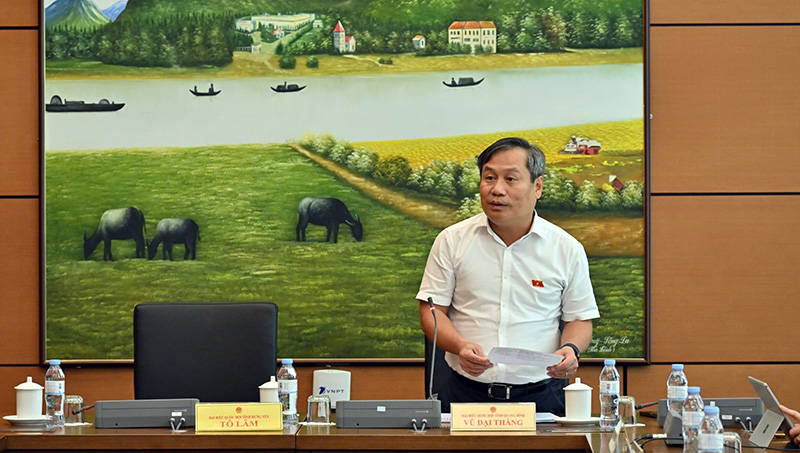 Điều hành phiên thảo luận tổ, đồng chí Vũ Đại Thắng, Ủy viên Trung ương Đảng, Bí thư Tỉnh ủy, Trưởng đoàn ĐBQH tỉnh, tổ trưởng thông tin: Sau 15 năm triển khai thi hành, Luật BHYT đã thực sự đi vào cuộc sống với 93,3 triệu người, tương ứng 93,35% dân số tham gia BHYT. Trong quá trình thực hiện đã phát sinh những vướng mắc, bất cập, hạn chế cần được điều chỉnh.