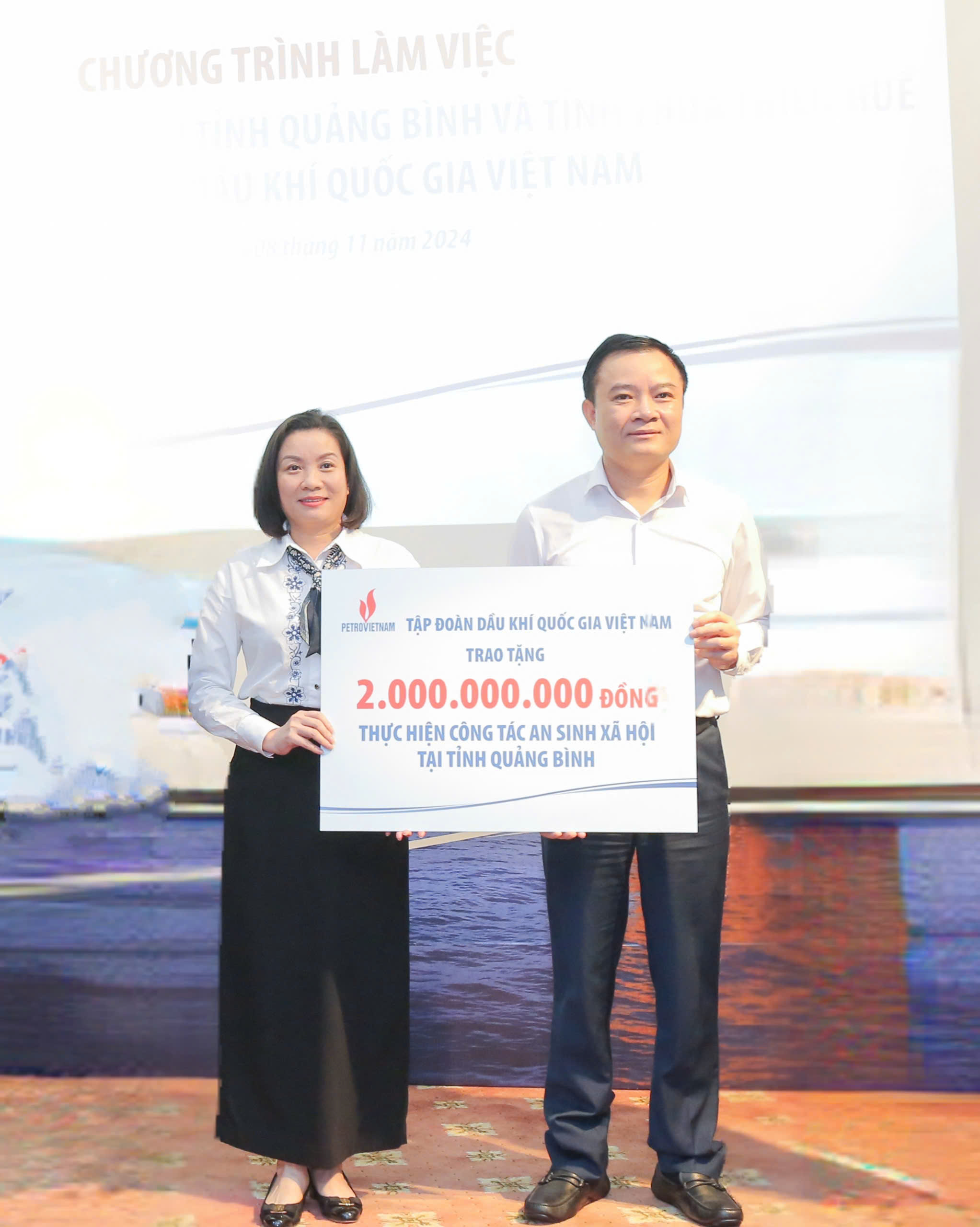 Đại diện lãnh đạo Tập đoàn Dầu khí Việt Nam trao kinh phí hỗ trợ Quảng Bình khắc phục hậu quả mưa lũ