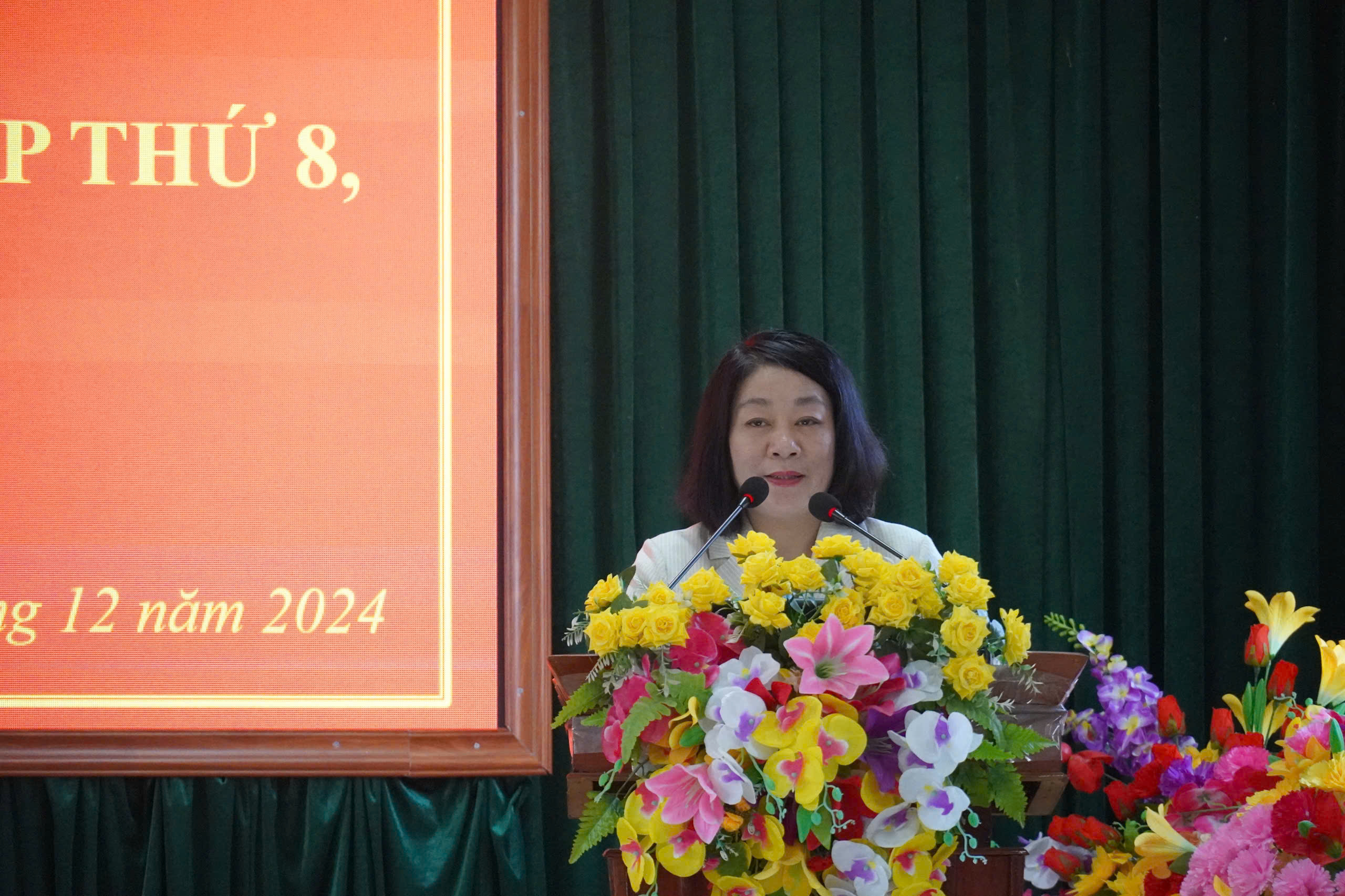 Đại biểu Nguyễn Thị Tuyết Nga báo cáo kết quả kỳ họp 8, Quốc hội khóa XV tại hội nghị tiếp xúc cử tri thị xã Ba Đồn