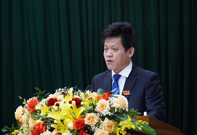 Ông Lê Bảo - Ủy viên Ban Thường vụ Tỉnh ủy, Trưởng Ban Dân vận Tỉnh ủy, Trưởng Ban Văn hóa - Xã hội HĐND tỉnh báo cáo tại kỳ họp