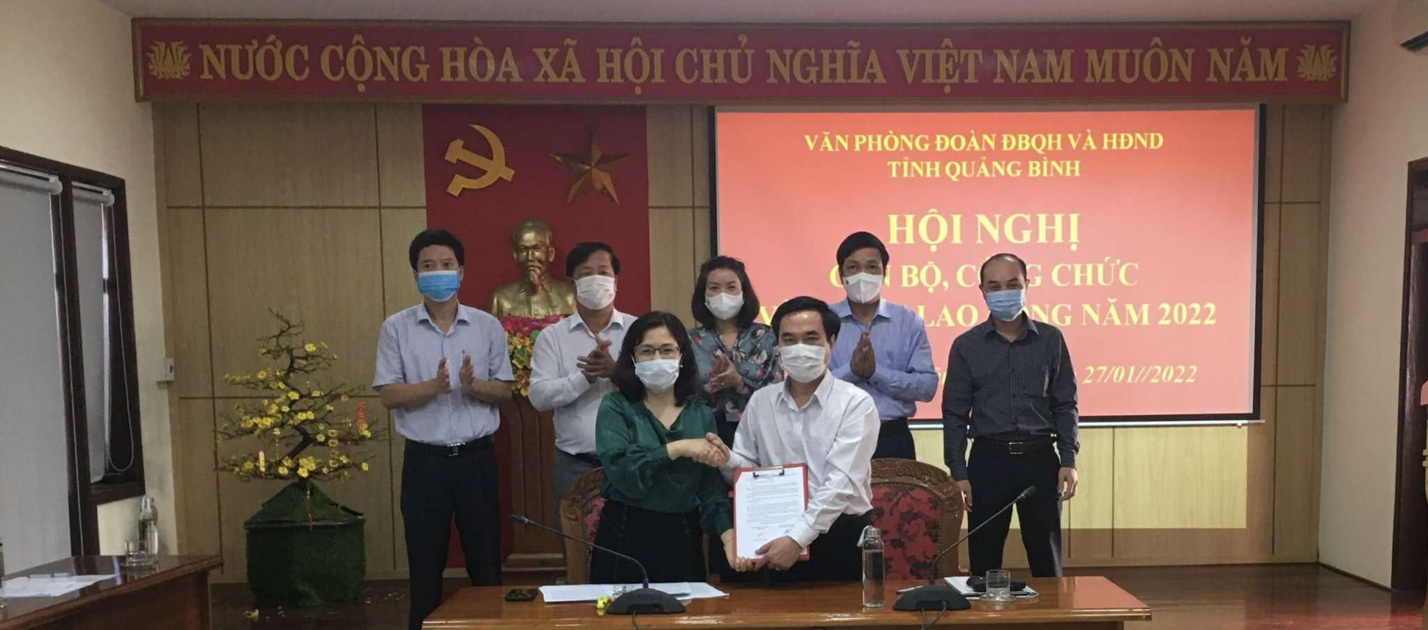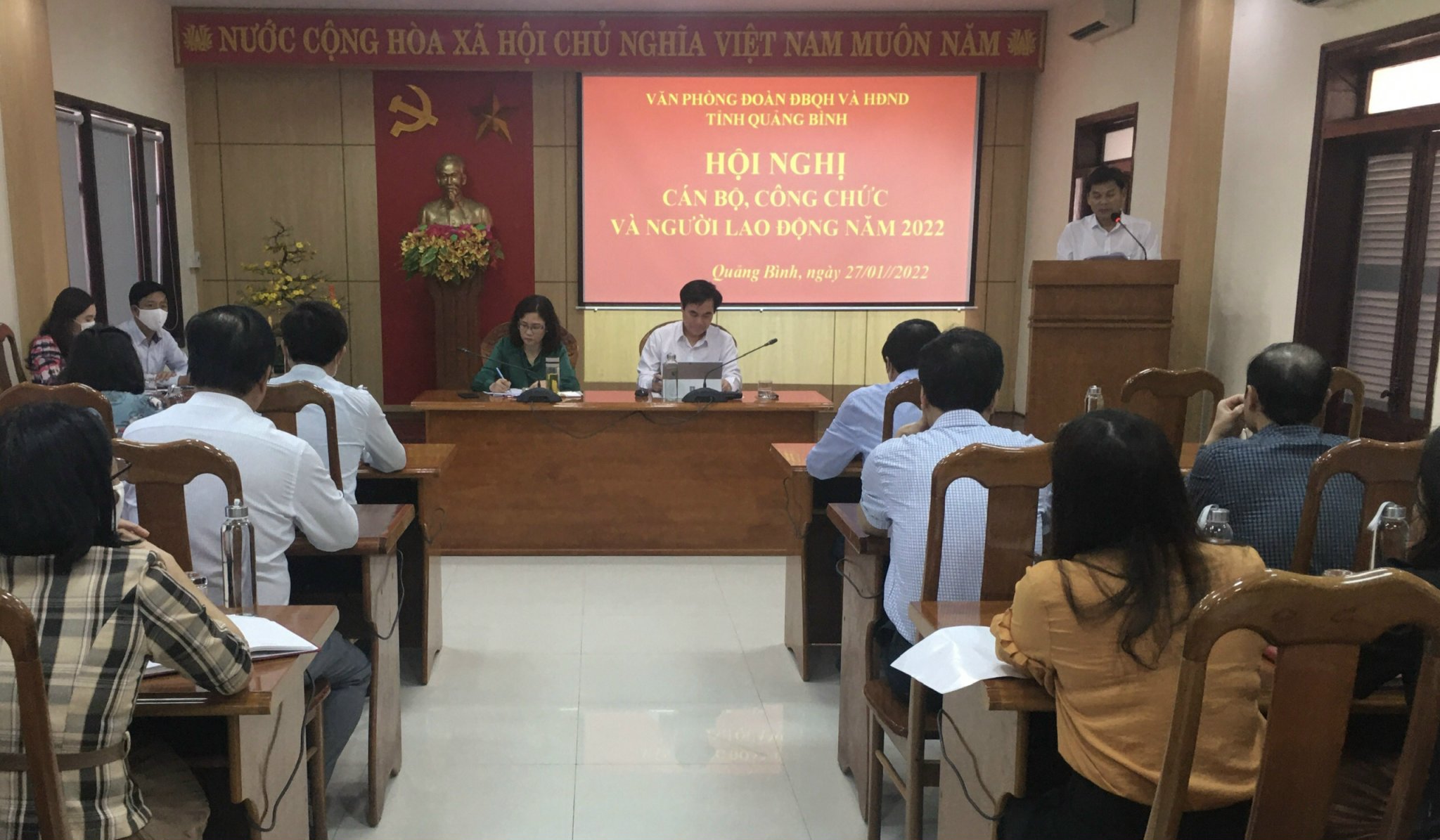 Chiều ngày 27/01/2022 cơ quan Văn phòng Đoàn ĐBQH và HĐND tỉnh tổ chức hội nghị cán bộ, công chức năm 2022. Tham dự hội nghị có đồng chí Nguyễn Công Huấn, UVBTV Tỉnh ủy, Phó Chủ tịch Thường trực HĐND tỉnh; đồng chí Hoàng Xuân Tân, Tỉnh ủy viên, Phó Chủ tịch HĐND tỉnh, đồng chí Nguyễn Minh Tâm, Tỉnh ủy viên, Phó Trưởng Đoàn ĐBQH tỉnh cùng các đồng chí Phó các Ban HĐND tỉnh và cán bộ, công chức, người lao động Văn phòng Đoàn ĐBQH và HĐND tỉnh.