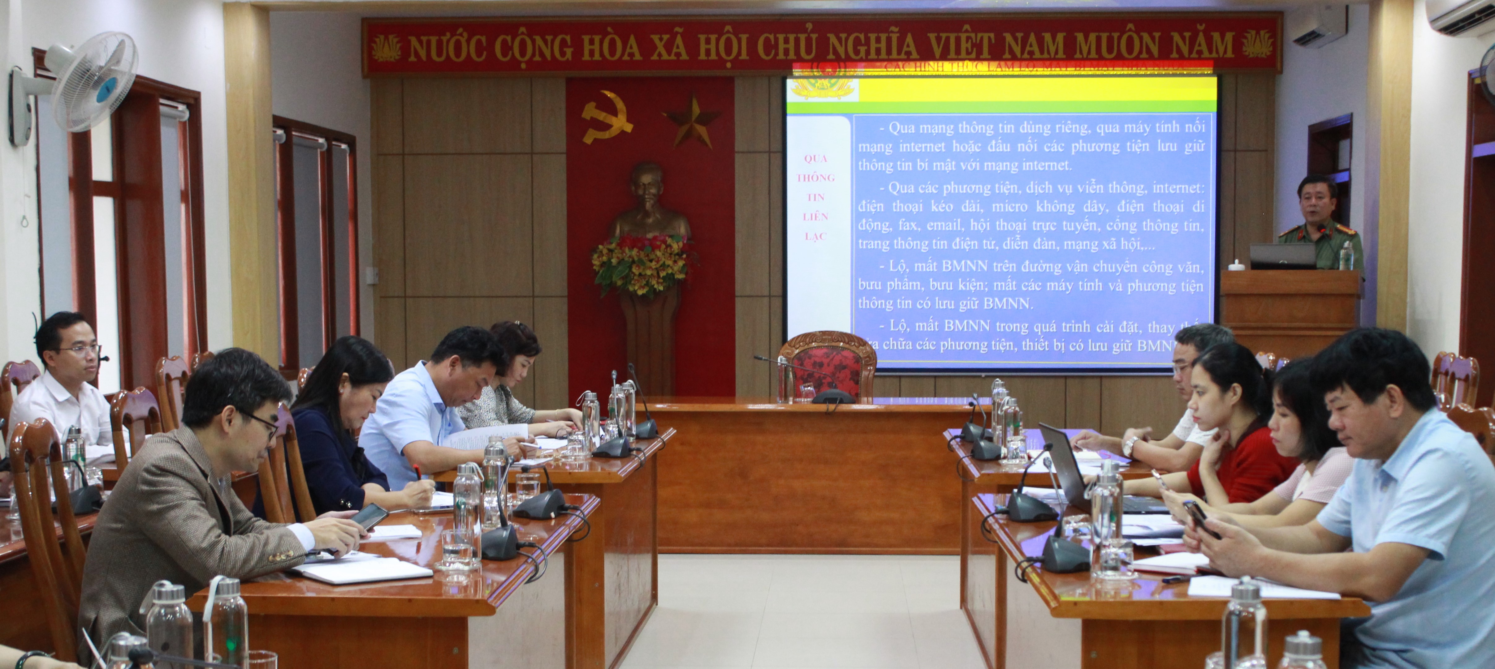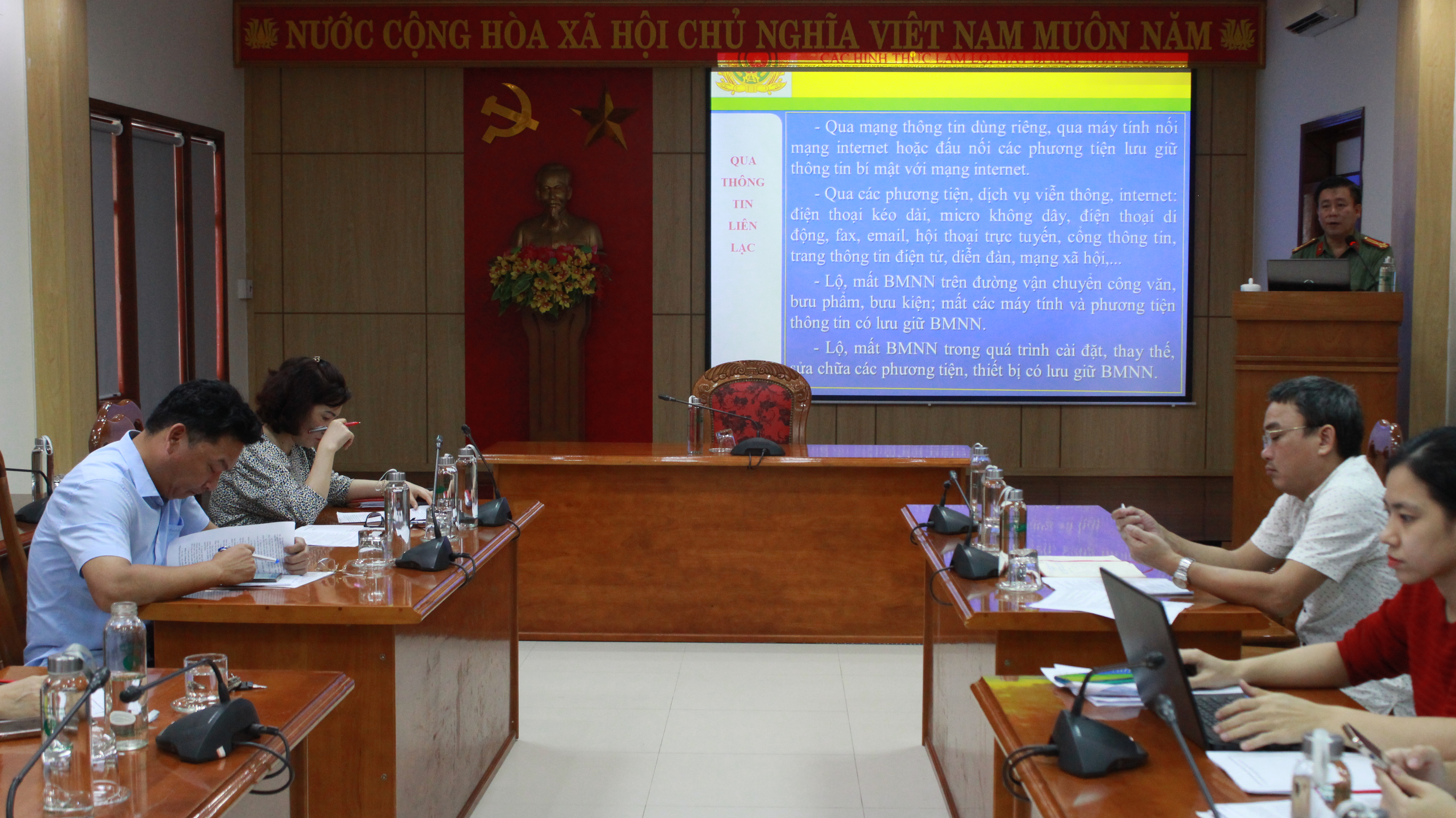 Tại hội nghị tập huấn, các học viên đã được nghe đồng chí Thượng tá Hoàng Thanh Bình, Phó Trưởng phòng PA03 Công an tỉnh thông tin về những nội dung về hoạt động bảo vệ BMNN, nguyên tắc, phạm vi bảo vệ BMNN và phân loại BMNN, các hành vi bị nghiêm cấm trong bảo vệ BMNN; các nội dung của công tác bảo vệ BMNN cần triển khai thực hiện tại các cơ quan; bảo vệ BMNN trong công tác văn thư, lưu trữ, … đồng thời được nghe giới thiệu một số nội dung cơ bản các văn bản quy phạm pháp luật quy định về công tác bảo vệ bí mật nhà nước như: Luật Bảo vệ bí mật nhà nước; Nghị định số 26/2020/NĐ-CP ngày 28/02/2020 của Thủ tướng Chính phủ, Thông tư số 24/20220/TT-BCA ngày 10/3/2020 của Bộ Công an; Quyết định số 199/QĐ-TTg ngày 19/02/2019 của Thủ tướng Chính phủ ban hành kế hoạch triển khai thi hành Luật Bảo vệ bí mật nhà nước và được quán triệt các văn bản liên quan đến lĩnh vực bảo vệ BMNN.