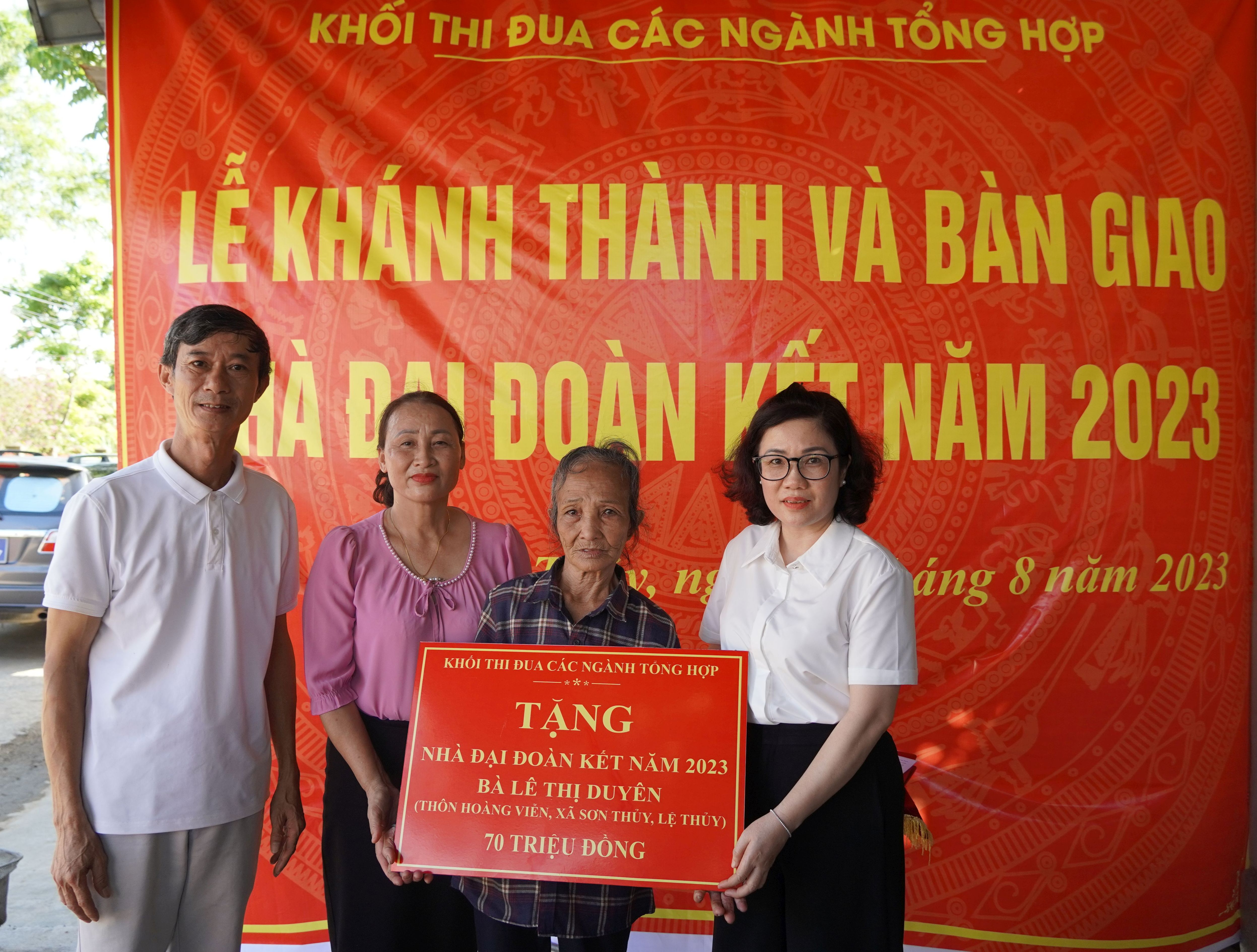 Thực hiện chương trình, kế hoạch hoạt động của Khối thi đua các ngành Tổng hợp. Chiều ngày 16/8/2023, Văn phòng Đoàn ĐBQH và HĐND tỉnh cùng các đơn vị thành thuộc Khối, gồm các sở, ban, ngành: Văn phòng UBND tỉnh, Khoa học và Công nghệ, Nội vụ, Kế hoạch và Đầu tư, Ngoại vụ, Ban Dân tộc, Cục Thống kê Quảng Bình đã tổ chức Lễ khánh thành và bàn giao nhà “Đại đoàn kết” cho gia đình bà Lê Thị Duyên đưa vào sử dụng. Tham dự Lễ khánh thành có đại diện lãnh đạo chính quyền địa phương xã Sơn Thủy và bà con nhân dân thôn Hoàng Viễn.
