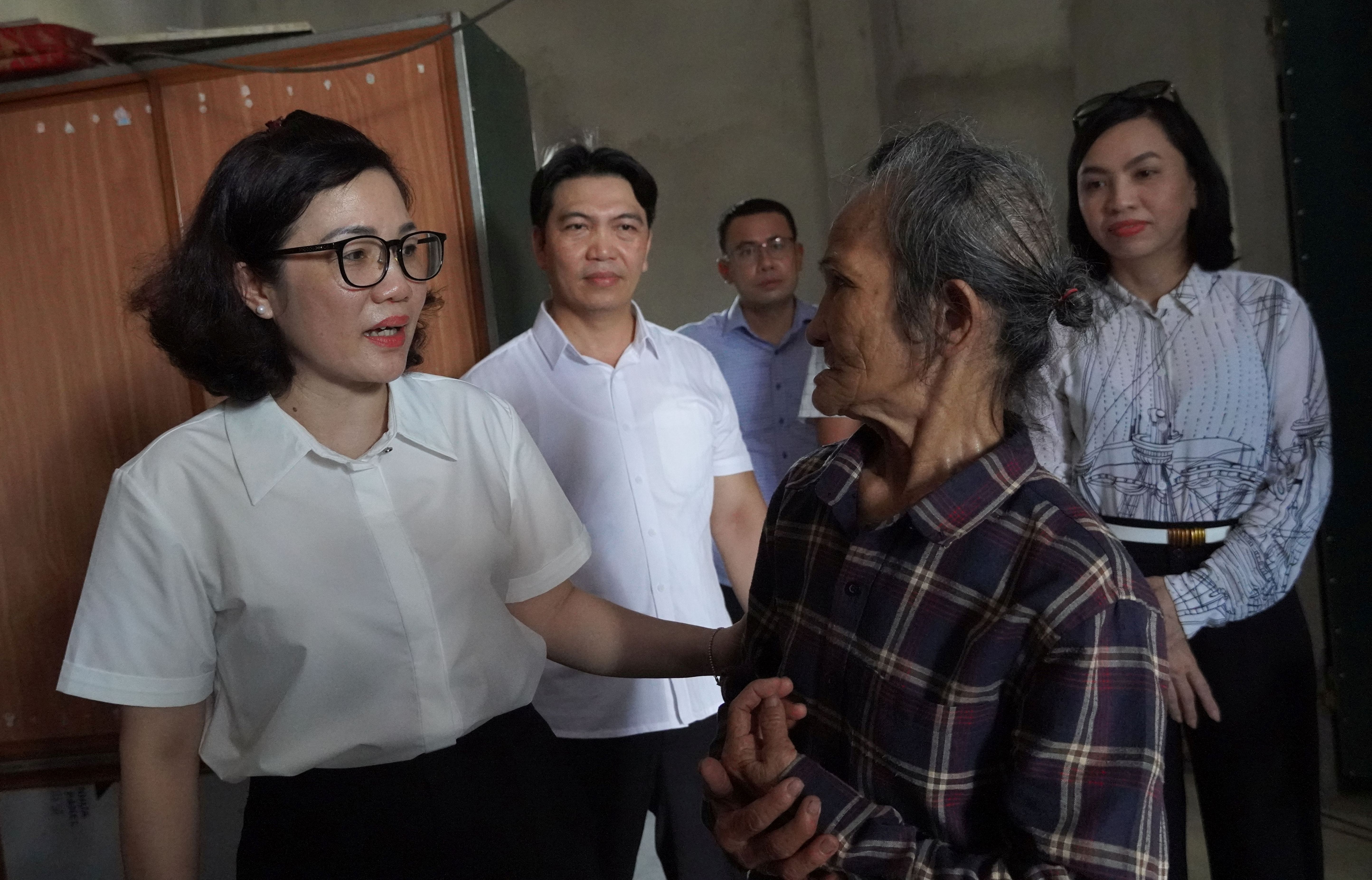 Đồng chí Nguyễn Thị Mai thăm hỏi động viên bà Lê Thị Duyên