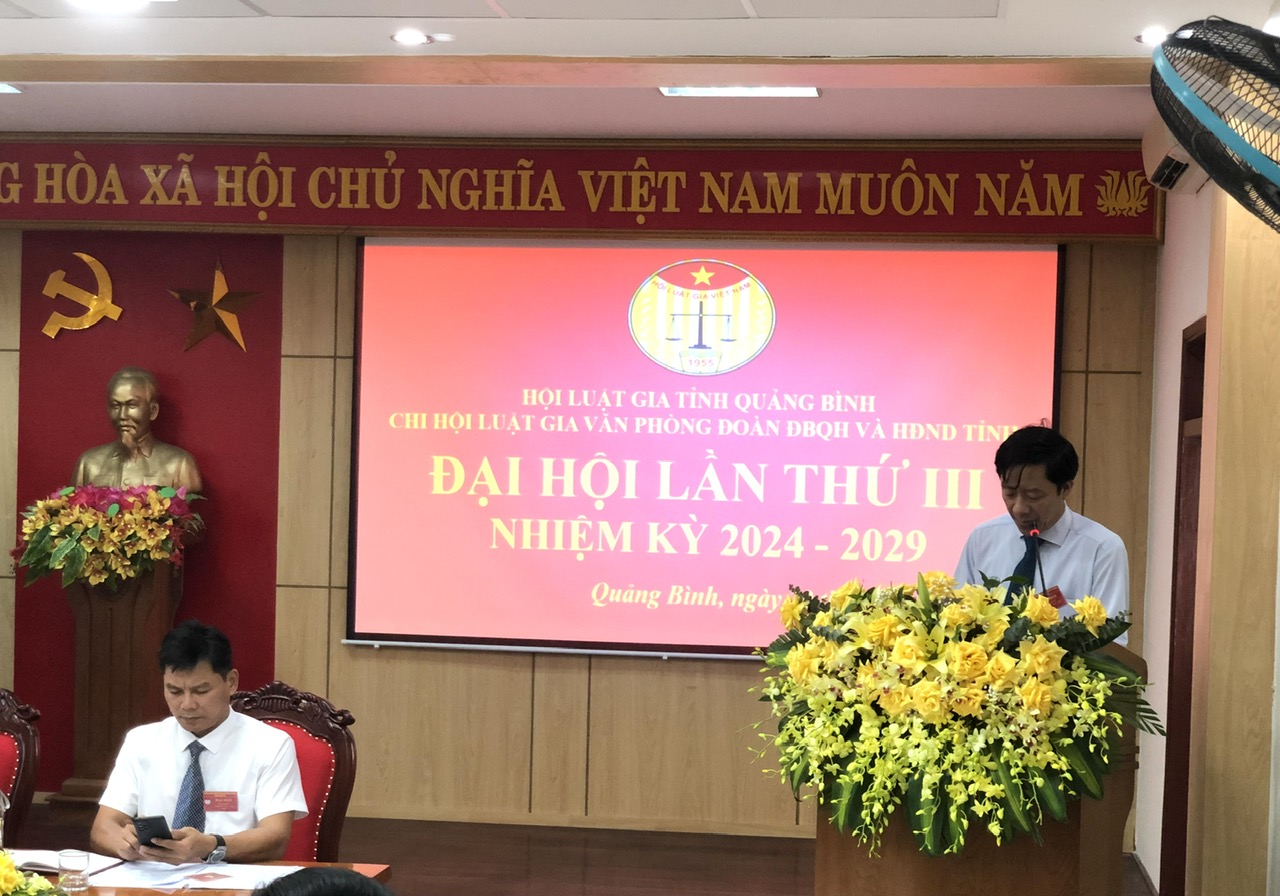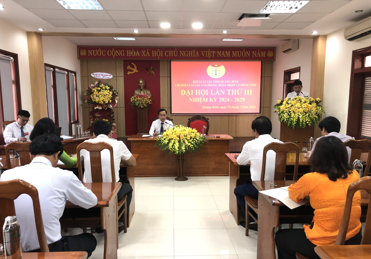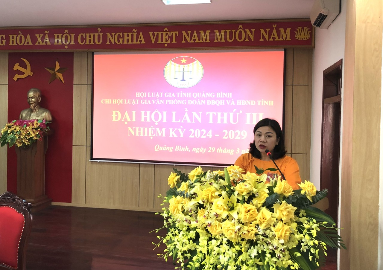 Đại hội đã thông qua Báo cáo tổng kết công tác Chi hội nhiệm kỳ 2018 - 2023 và phương hướng, nhiệm vụ công tác nhiệm kỳ 2024 - 2029; Báo cáo đã đánh giá những kết quả đã đạt được và cũng đã chỉ ra những tồn tại, hạn chế, nguyên nhân từ đó đưa ra được phương hướng, nhiệm vụ trọng tâm và mục tiêu phấn đấu của Chi hội Luật gia Văn phòng Đoàn ĐBQH và HĐND tỉnh, nhiệm kỳ mới; theo đó, “Trong nhiệm kỳ 2024 - 2029, Chi Hội Luật gia phấn đấu 100% hội viên hoàn thành tốt nhiệm vụ và hoàn thành xuất sắc nhiệm vụ chuyên môn; vận động đạt trên 90% cán bộ, công chức trong cơ quan đủ điều kiện tham gia vào tổ chức Hội Luật gia và sinh hoạt tại Chi hội; Hội viên xuất sắc và Hội viên giỏi trong hoạt động của Chi hội và công tác chuyên môn đạt từ 80% trở lên, không có Hội viên trung bình và yếu kém; hằng năm Chi hội đạt Chi hội cơ sở vững mạnh, xuất sắc”
