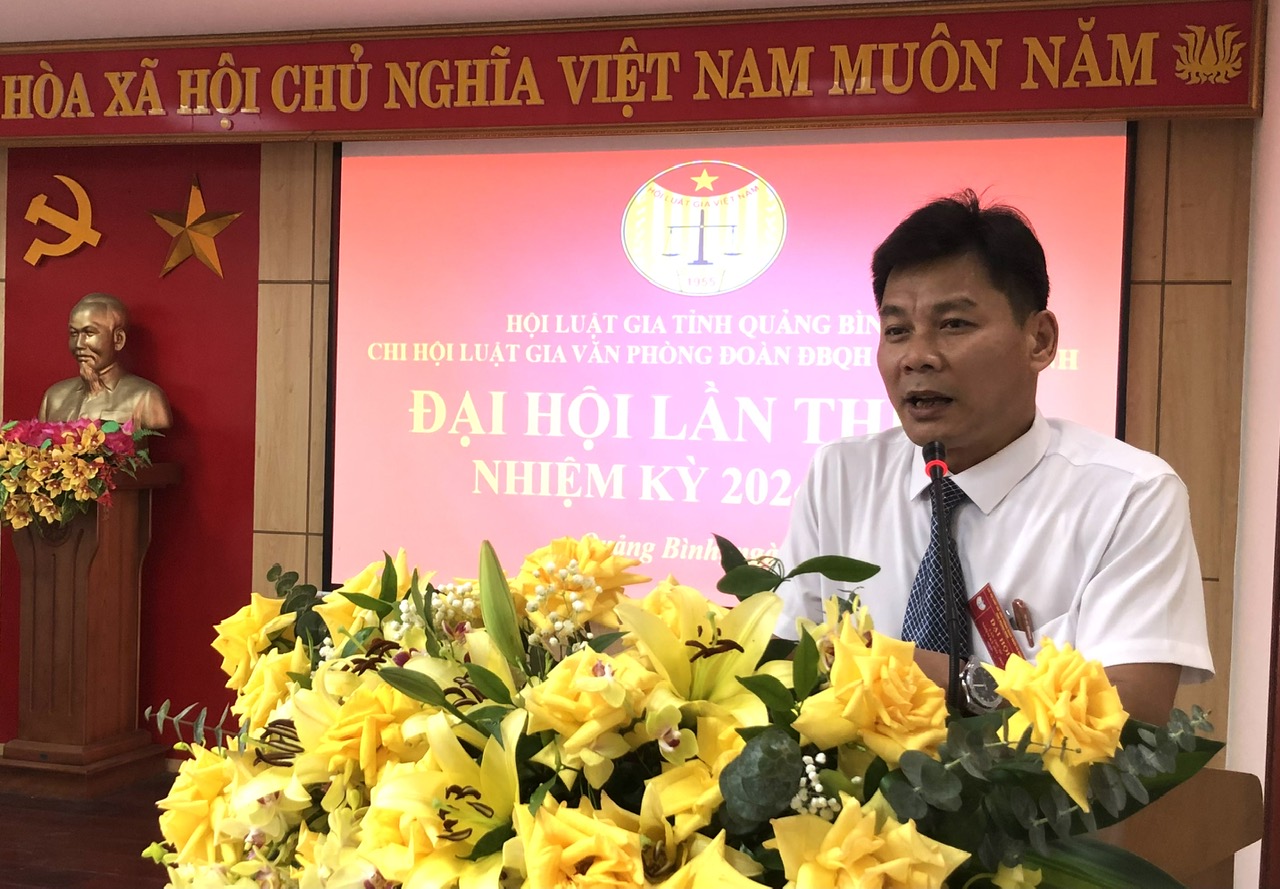 Đồng chí Lê Phong Hồng, Phó Chánh Văn phòng Đoàn ĐBQH và HĐND tỉnh, Chi hội Trưởng Chi hội Luật gia Văn phòng Đoàn ĐBQH và HĐND tỉnh nhiệm kỳ 2018 - 2023 đã có bài phát biểu khai mạc Đại hội. Theo đó, Đại hội Chi hội Luật gia Văn phòng Đoàn ĐBQH và HĐND tỉnh có nhiệm vụ xây dựng Chi hội thật sự vững mạnh về chính trị, tư tưởng và tổ chức; đặt ra các mục tiêu, nhiệm vụ và các giải pháp cụ thể, khả thi nhằm tham gia tích cực có hiệu quả các hoạt động xã hội nghề nghiệp phục vụ tốt nhiệm vụ chính trị của cơ quan…