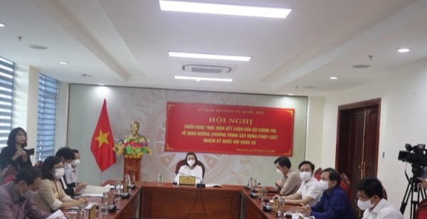 Kết luận Hội nghị, đồng chí Vương Đình Huệ - Ủy viên Bộ Chính trị, Chủ tịch Quốc hội đã nêu rõ, thể chế và hiệu lực của thể chế có vai trò quan trọng và quyết định đối với sự phát triển của tất cả các quốc gia. Tuy nhiên, vai trò của thể chế lại phụ thuộc lớn vào chất lượng của hệ thống pháp luật. Chính vì lẽ đó, cùng với yêu cầu tập trung xây dựng, hoàn thiện đồng bộ thể chế phát triển, trước hết là thể chế phát triển nền kinh tế thị trường định hướng xã hội chủ nghĩa, Đại hội XIII của Đảng cũng xác định cần tiếp tục xây dựng, hoàn thiện hệ thống pháp luật đầy đủ, kịp thời, đồng bộ, thống nhất, khả thi, công khai, minh bạch, ổn định, có sức cạnh tranh quốc tế, lấy quyền, lợi ích hợp pháp, chính đáng của người dân, doanh nghiệp làm trọng tâm nhằm khơi thông nguồn lực, thúc đẩy đổi mới sáng tạo, bảo đảm yêu cầu phát triển bền vững kinh tế, xã hội và quốc phòng, an ninh, đối ngoại của đất nước trong tình hình mới. Chủ tịch Quốc hội nhấn mạnh mấy vấn đề: Việc triển khai kết luận là nhiệm vụ trọng tâm của Quốc hội, các cơ quan của Quốc hội và đại biểu Quốc hội đồng thời nhiệm vụ của toàn hệ thống chính trị. Chủ tịch Quốc hội đề nghị Ủy ban Pháp luật tiếp thu đầy đủ các ý kiến Hội nghị để trình Ủy ban Thường vụ Quốc hội ban hành Kế hoạch triển khai.