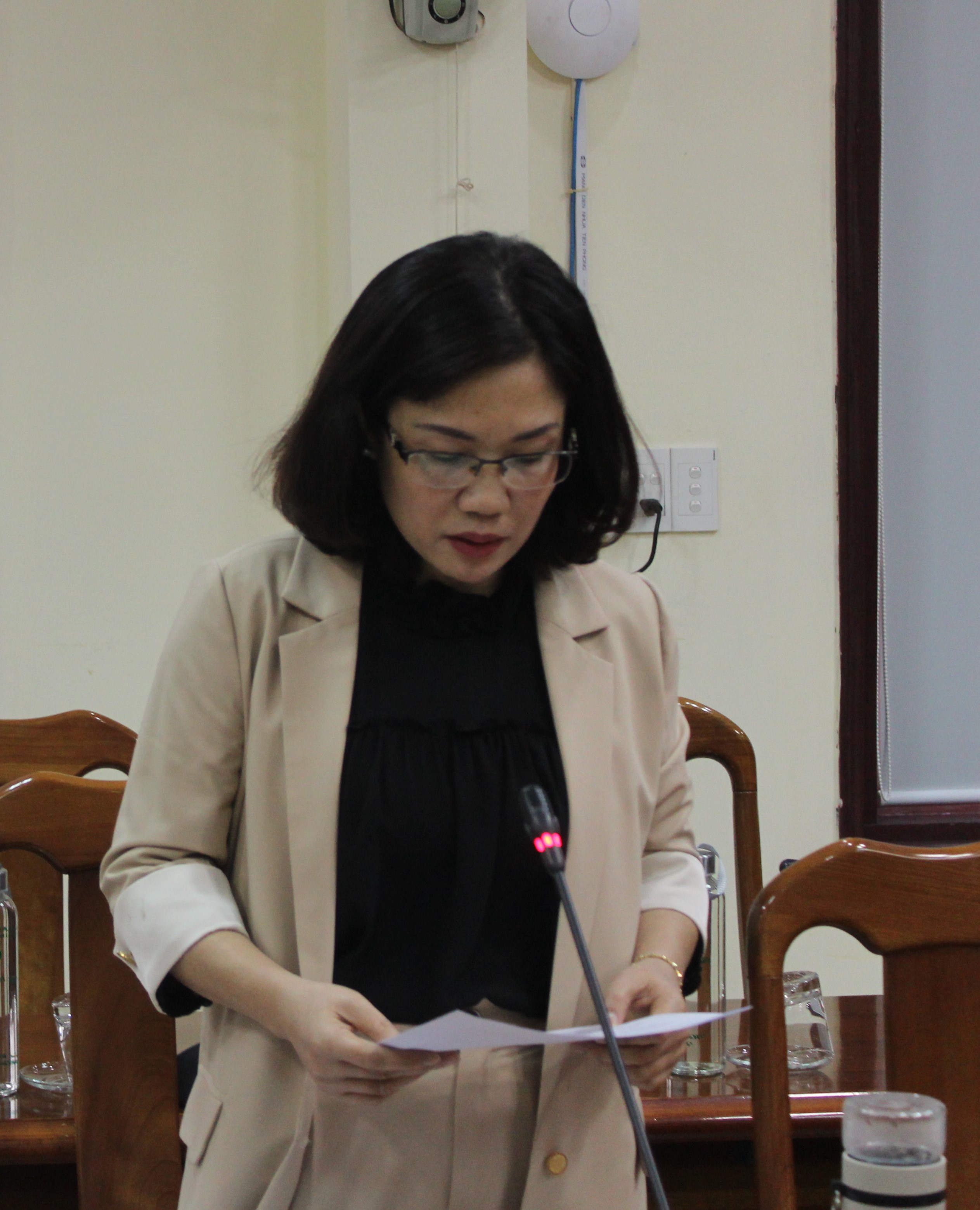 Đồng chí Nguyễn Thị Mai, Chánh Văn phòng Đoàn ĐBQH và HĐND tỉnh báo cáo các nội dung cần xem xét, giải quyết