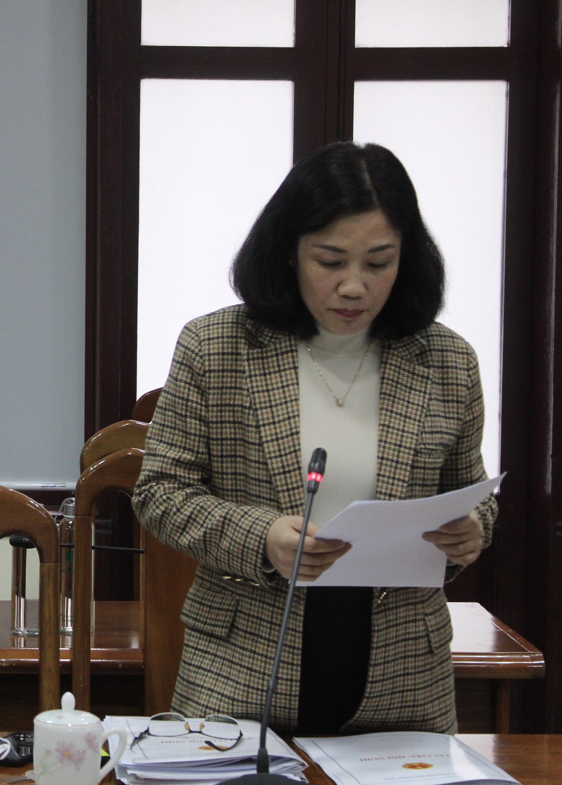 Đồng chí Nguyễn Thị Mai, Chánh Văn phòng Đoàn ĐBQH và HĐND tỉnh báo cáo các nội dung cần xem xét, cho ý kiến tại phiên họp