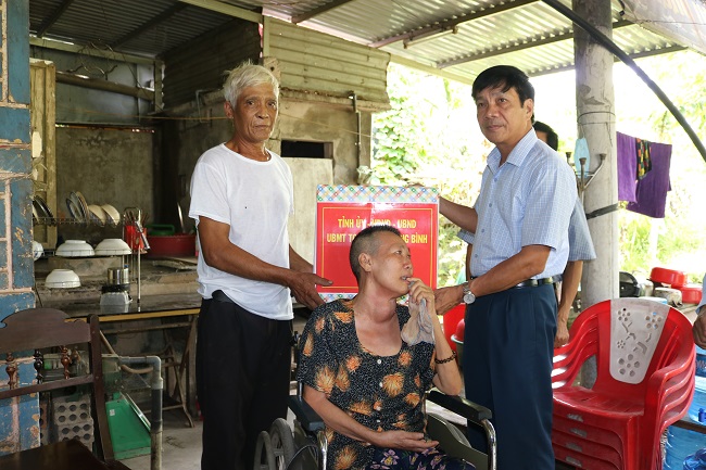 Đồng chí Nguyễn Công Huấn thăm, tặng quà cho gia đình bệnh binh Chu Thị Đổng