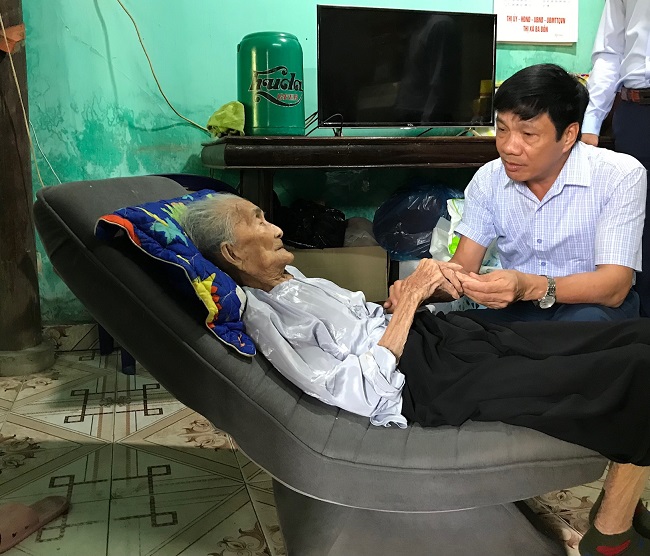 Đồng chí Nguyễn Công Huấn tặng quà Mẹ VNAH Nguyễn Thị Nậy
