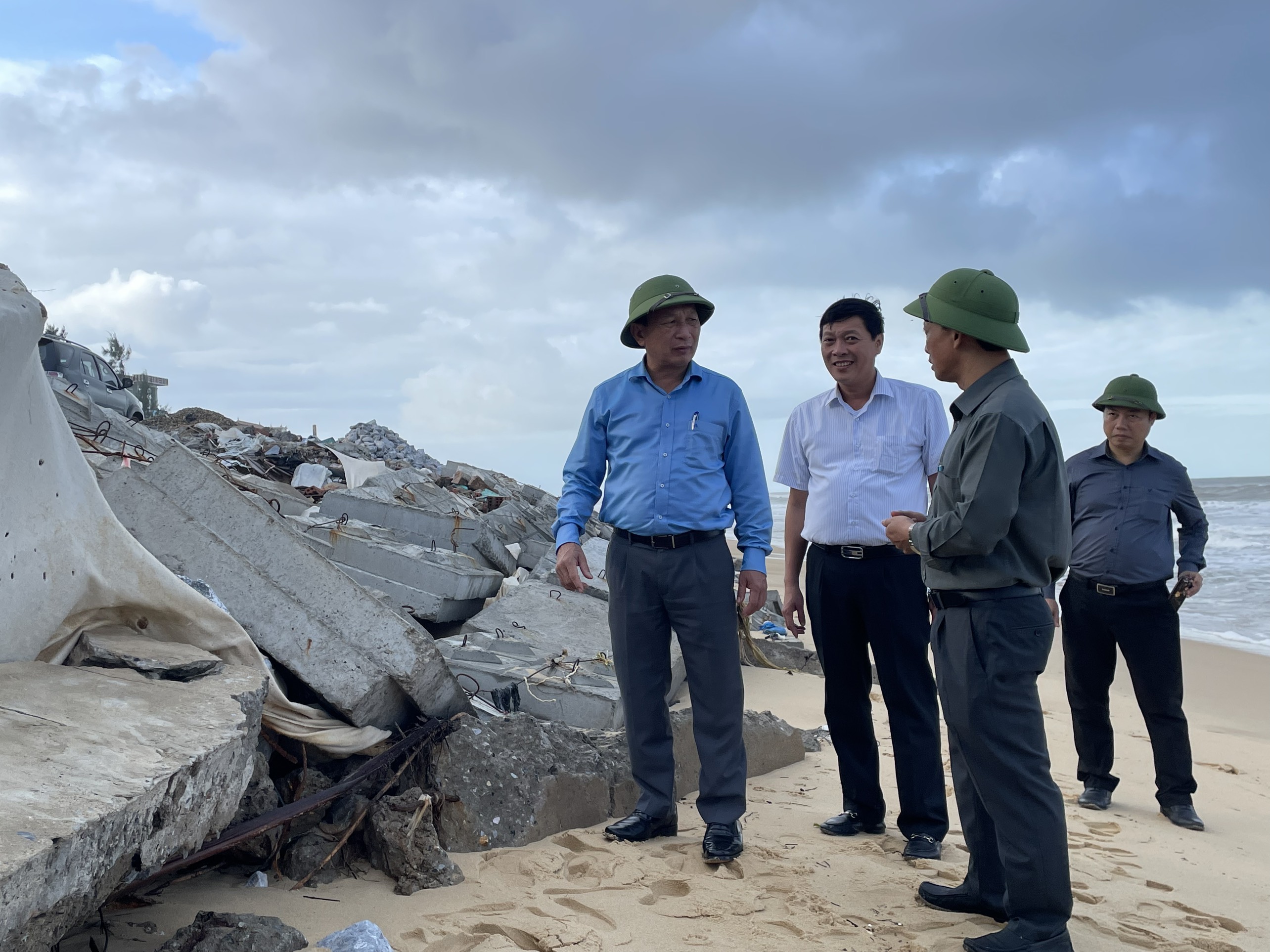 Đồng chí Trần Hải Châu kiểm tra tiến độ nâng cấp, sửa chữa kè biển Nhân Trạch