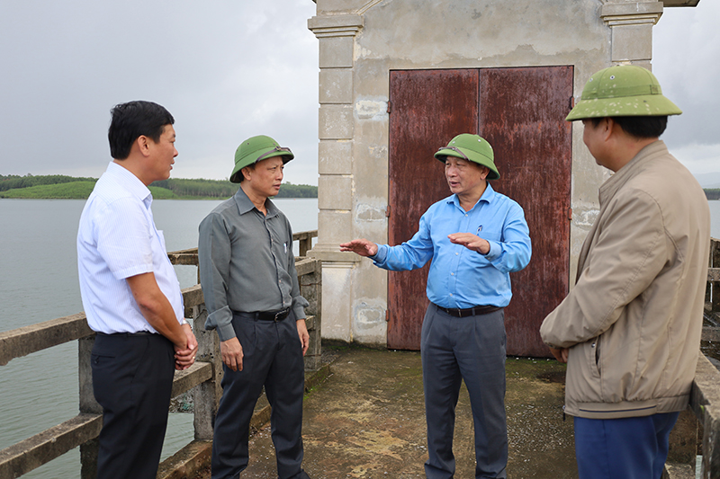 Đồng chí Trần Hải Châu và đoàn công tác kiểm tra tại hồ chứa nước Vực Nồi