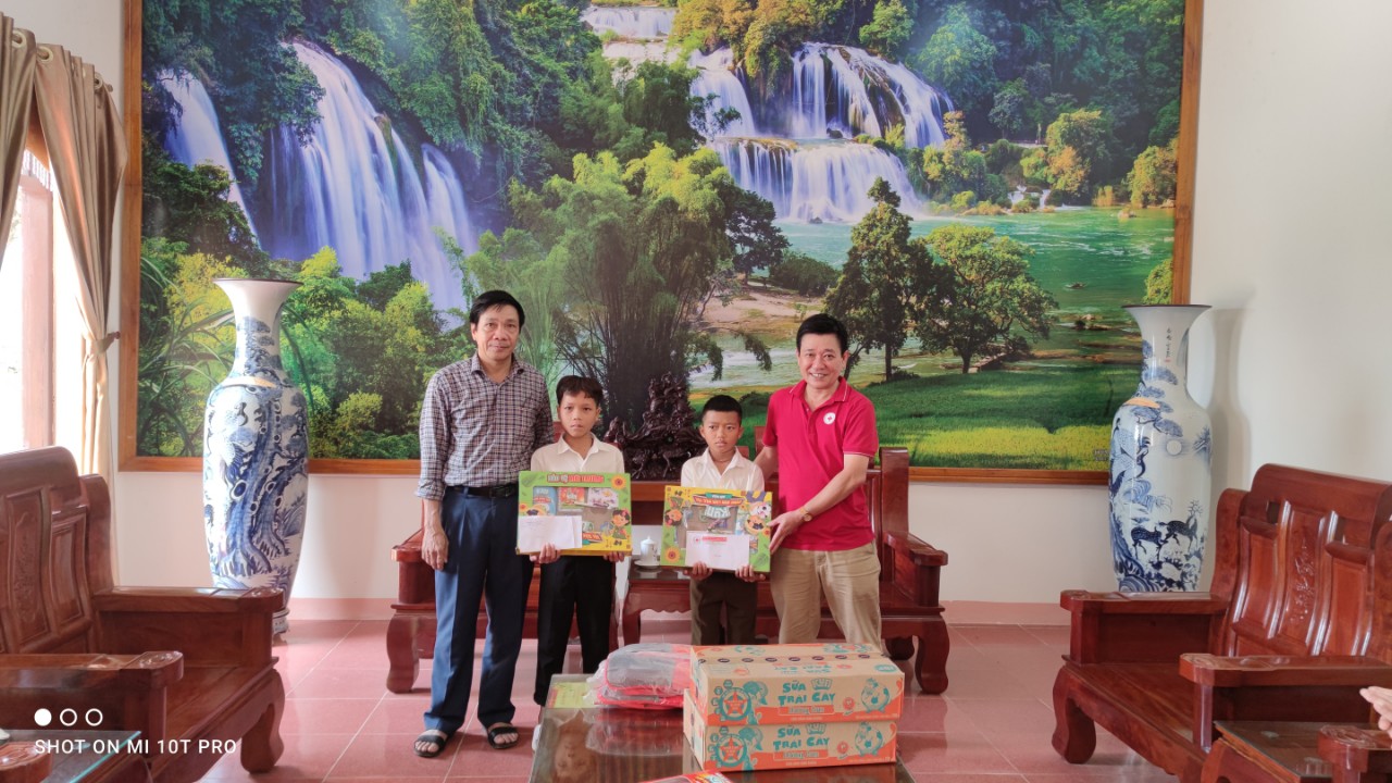 Đồng chí Phó Chủ tịch Thường trực HĐND tỉnh tặng quà cho hai cháu người dân tộc Bru-Vân Kiều có hoàn cảnh khó khăn
