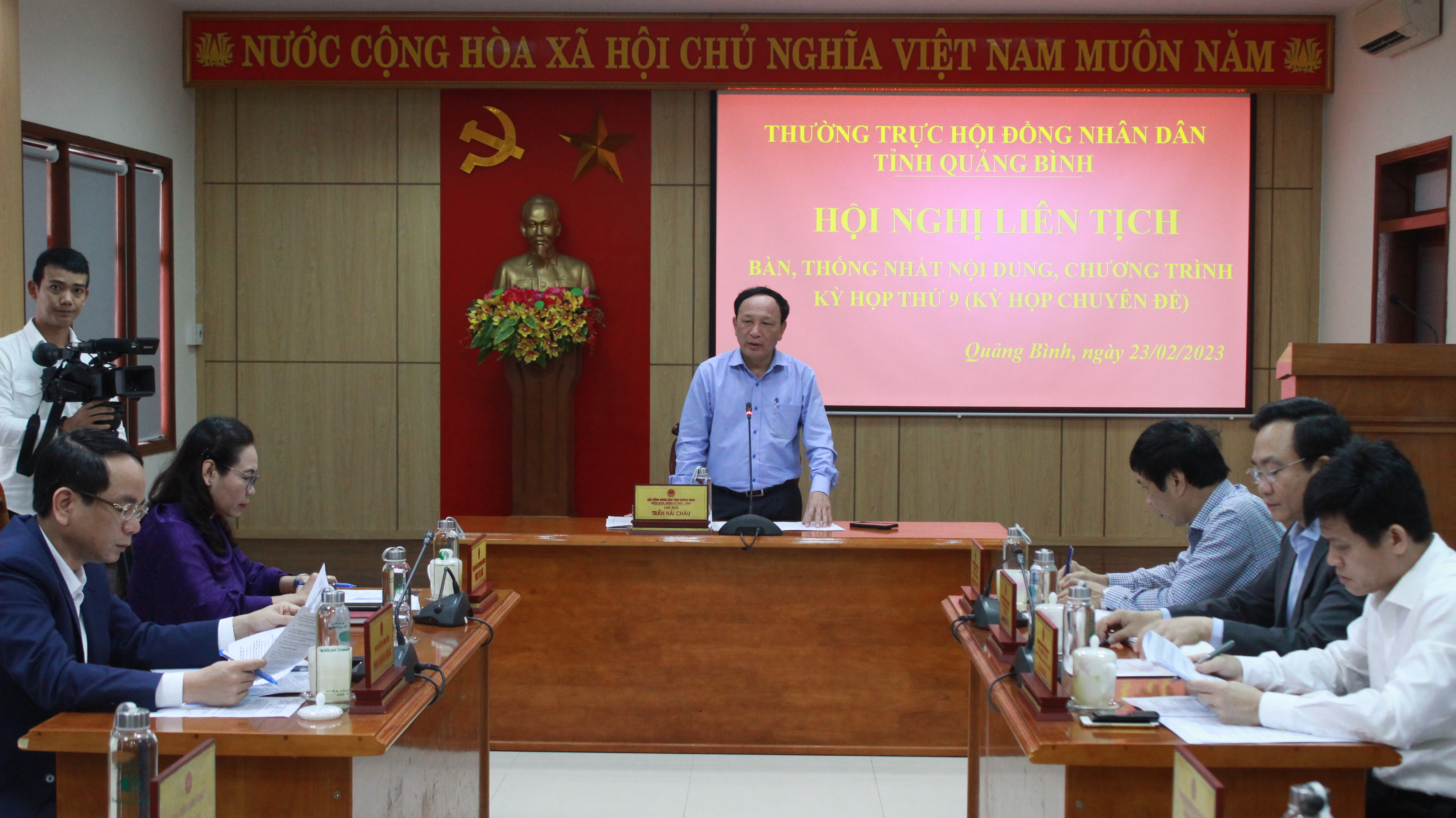 Sáng ngày 23/2/2023, Thường trực HĐND tỉnh tổ chức hội nghị liên tịch bàn, thống nhất nội dung, chương trình, kế hoạch tổ chức kỳ họp thứ 9 (kỳ họp chuyên đề) của HĐND tỉnh khóa XVIII, nhiệm kỳ 2021 - 2026. Đồng chí Trần Hải Châu - Phó Bí thư Thường trực Tỉnh ủy, Chủ tịch HĐND tỉnh chủ trì hội nghị.