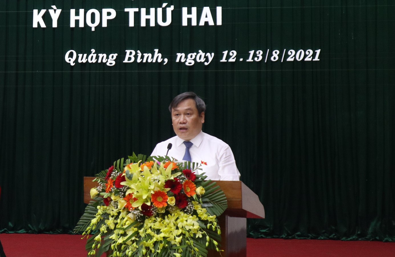 Hôm nay Hội đồng nhân dân tỉnh khoá XVIII khai mạc Kỳ họp thứ 2 - Kỳ họp thường lệ giữa năm vào thời điểm làn sóng dịch Covid-19 thứ 4 đang bùng phát, ảnh hưởng nghiêm trọng đến hoạt động kinh tế - xã hội, đời sống Nhân dân cả nước. Thay mặt Tỉnh uỷ, HĐND, UBND, Mặt trận tổ quốc Việt Nam và cử tri toàn tỉnh, tôi xin gửi lời thăm hỏi và kính chúc Đảng bộ, chính quyền, Nhân dân thành phố Hồ Chí Minh và các tỉnh phía Nam sớm vượt qua giai đoạn gian khó này. Tôi cũng xin chia sẻ với những khó khăn do phải giãn cách xã hội trong thời gian dài đối với bà con người Quảng Bình hiện đang sinh sống, lao động, học tập tại khu vực phía Nam cùng toàn thể Nhân dân Quảng Bình và xin cam kết tỉnh đã, đang và sẽ luôn đồng hành cùng bà con để cùng nhau vượt qua đại dịch.