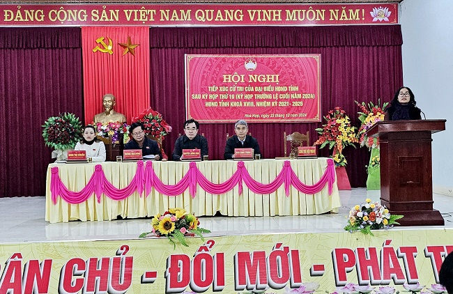 Chiều ngày 23/12/2024, Tổ đại biểu HĐND tỉnh gồm: Ông Nguyễn Lương Bình - Ủy viên Ban Thường vụ Tỉnh ủy, Trưởng Ban Nội chính Tỉnh ủy, Trưởng Ban Pháp chế HĐND tỉnh; Ông Bùi Anh Tuấn - Tỉnh ủy viên, Bí thư Huyện ủy, Chủ tịch HĐND huyện Minh Hóa; ông Dương Văn Hùng - Phó Trưởng chuyên trách Ban Kinh tế - Ngân sách HĐND tỉnh và bà Đinh Thị Chuẩn - Trưởng Trạm Y tế xã Hóa Thanh đã có buổi tiếp xúc với cử tri huyện Minh Hóa sau kỳ họp thứ 19, HDNĐ tỉnh khóa XVIIII tại trụ sở UBND xã Hóa Hợp.