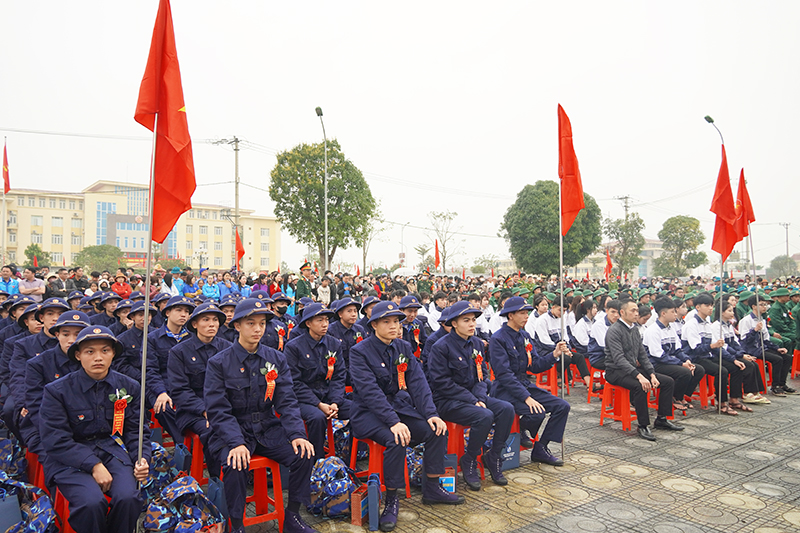 Phát biểu tại buổi lễ, đại diện lãnh đạo huyện Quảng Trạch ghi nhận, biểu dương tinh thần trách nhiệm của các tân binh, gia đình tân binh và các cấp, chính quyền địa phương đã tích cực động viên, tạo điều kiện để các thanh niên lên đường làm nhiệm vụ.