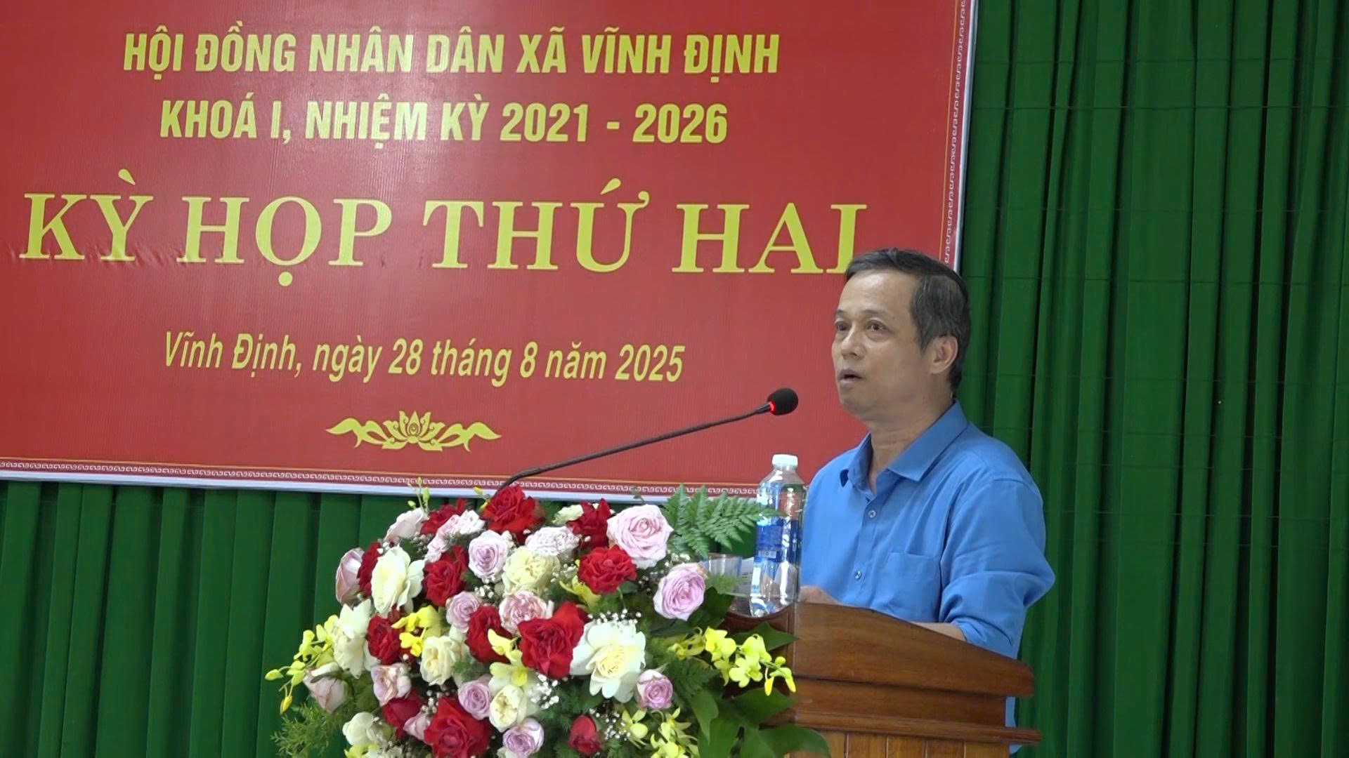 Với tinh thần khẩn trương, nghiêm túc và dân chủ, kỳ họp thứ 2 HĐND xã Vĩnh Định khóa I đã hoàn thành toàn bộ nội dung, chương trình theo kế hoạch đề ra. Phát biểu chỉ đạo kỳ họp, đ/c Nguyễn Trần Huy – TUV, Phó Chủ tịch HĐND tỉnh nêu rõ: Để đạt được các chỉ tiêu của Đại hội Đảng bộ xã nhiệm kỳ 2025-2030 đã đề ra, cần xây dựng chương trình hành động và chỉ đạo các Ban HĐND, UBND xã cụ thể hóa các chỉ tiêu, nhiệm vụ đề ra theo lộ trình, nhiệm kỳ, tổ chức triển khai thực hiện nghiêm túc, quyết liệt, đồng bộ các giải pháp; Khai thác tối đa các tiềm năng, lợi thế của xã Vĩnh Định để phát triển KT-XH, QP-AN. Các vị đại biểu HĐND xã, với trách nhiệm trước cử tri, tích cực tuyên truyền, vận động nhân dân thực hiện tốt các chủ trương, chính sách của Đảng, pháp luật của Nhà nước, góp phần đưa Nghị quyết vào thực tiễn.