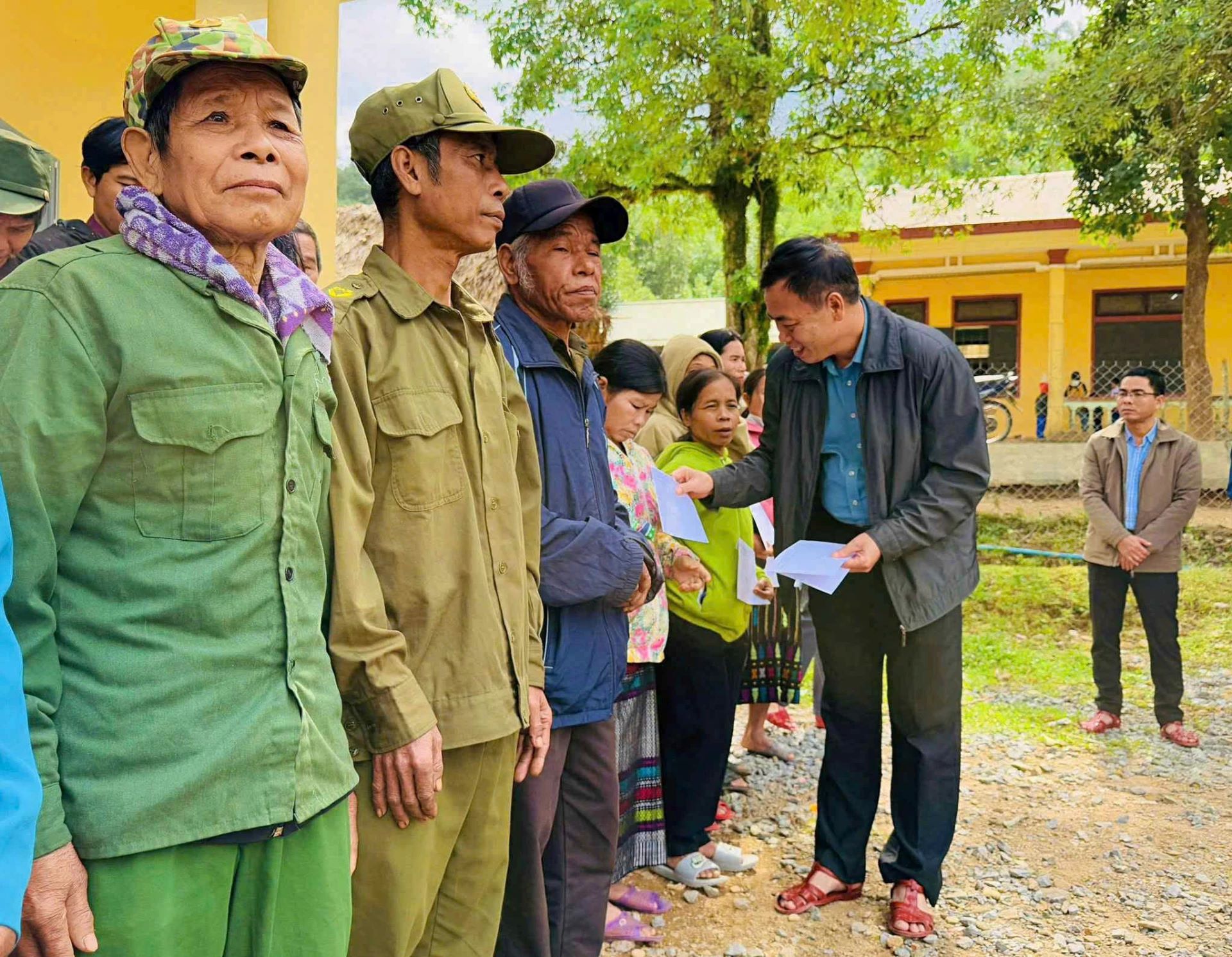 Nhân dịp này, đồng chí Nguyễn Đăng Quang, Phó Bí thư Tỉnh uỷ, Chủ tịch HĐND tỉnh trao tặng 30 suất quà cho các hộ gia đình có hoàn cảnh khó khăn trên địa bàn xã. Đồng thời, đoàn công tác đã đến thăm, động viên và trao quà cho đội ngũ thầy cô giáo cùng các em học sinh tại thôn Cát, Trỉa, thể hiện sự quan tâm sâu sắc đến đời sống Nhân dân và sự nghiệp giáo dục vùng biên giới.