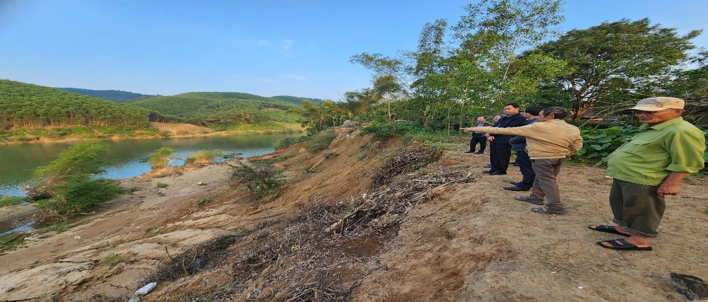 Đoàn công tác của Thường trực HĐND tỉnh cũng đi khảo sát thực tế khu vực sạt lở núi, sạt lở bờ sông Gianh tại các thôn Thuận Tiến và Xuân Canh, xã Đồng Lê.