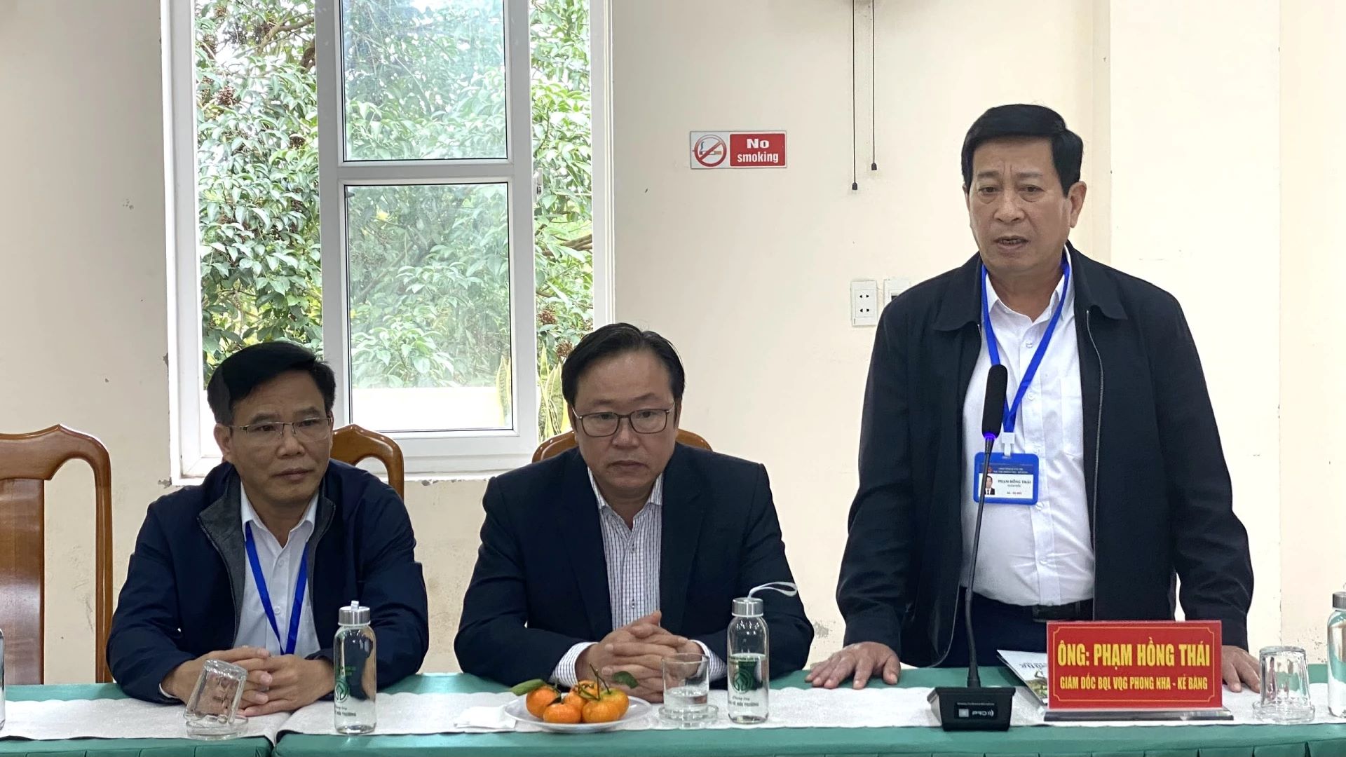 Đại diện Ban Quản lý Vườn Quốc gia Phong Nha-Kẻ Bàng báo cáo với đoàn công tác