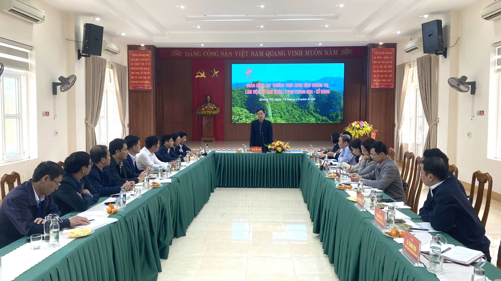 Hôm nay 14/1, đoàn công tác của Thường trực HĐND tỉnh do đồng chí Nguyễn Đăng Quang, Phó Bí thư Tỉnh ủy, Chủ tịch HĐND tỉnh làm trưởng đoàn đã có buổi làm việc với Ban Quản lý Vườn Quốc gia Phong Nha-Kẻ Bàng.